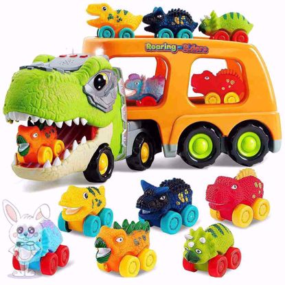 مغامرة مليئة بالديناصورات: انغمس في وقت لعب من عصور ما قبل التاريخ مع مجموعة شاحنات نقل الديناصورات، المناسبة لجميع عشاق شاحنات الديناصورات. شاحنة الديناصورات هذه جاهزة للعمل بمجرد إخراجها من الصندوق، وهي مصممة للأطفال. تتميز بتصميم شاحنة رأس تي ريكس الجذاب، وصندوق من طبقتين، وتتضمن اللعب.