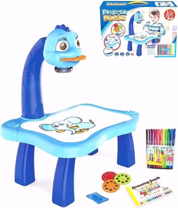 9/Children's Education Desk with Smart Projector - Children's Drawing Teaching Table with Light Music and Projector for Displaying Drawings Great Gift for Boys and Girls Birthday in Color A-Blue and Size...